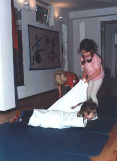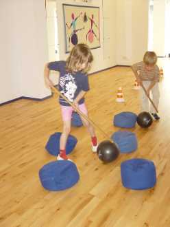 Spiel und Bewegung in verschiedenen Erlebensformen (mit Alltagsmaterialien, Sing- und Tanzspielen, Turnen, Rhythmik und Rollenspiel) sind grundlegende Bestandteile des psychomotorischen Konzepts. Sie sollen Bewegungs- und Leistungsfreude wecken und ohne Leistungsdruck die Gesamtpersönlichkeit des Kindes fördern. Die Materialien, mitdenen Bewegung initiiert, sind vielseitig und kreativ (von Rollbrettern über Luftballons, Teppichfliesen, Schwungtücher, Balaciergeräten bis zu Zeitungspapier und Flaschenkorken!). Geschicklichkeit (Grobmotorik und Feinmotorik), Gleichgewicht und Haltung und Wahrnehmung sollen gefördert werden. Aber auch Bewegungsphantasie soll angeregt werden, indem die Kinder immer wieder aufgefordert werden, eigene Bewegungsideen und Abläufe zu entwickeln und umzusetzen …